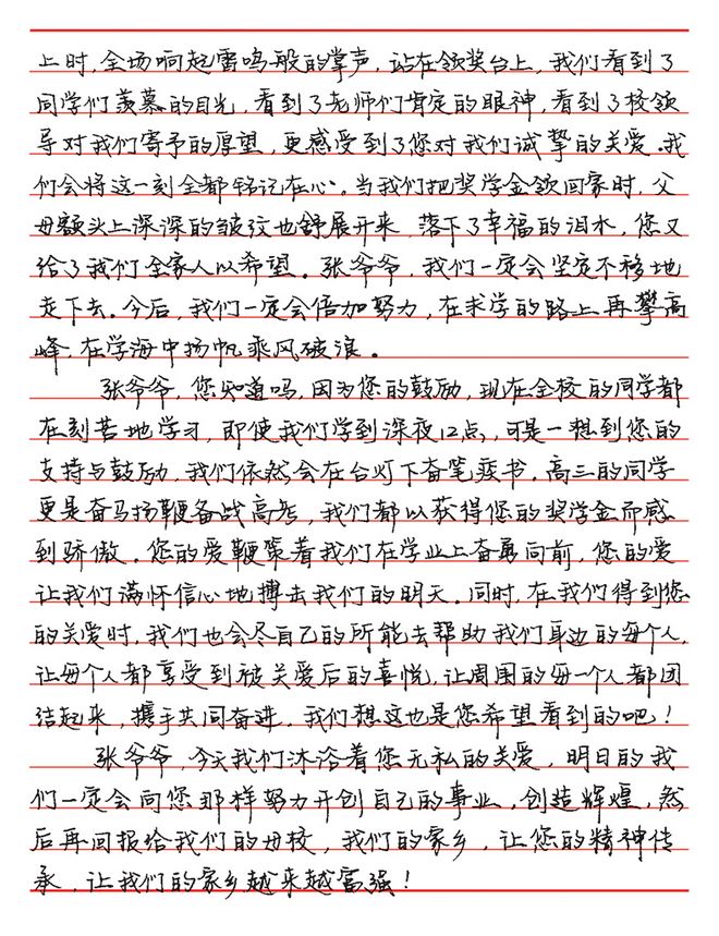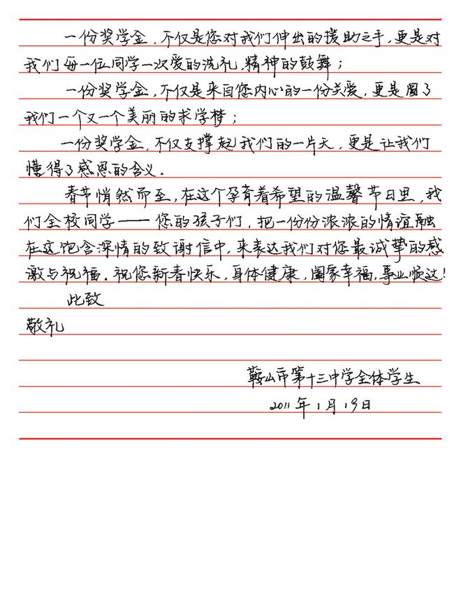 鞍山市第十三中學(xué)受資助學(xué)生的來信